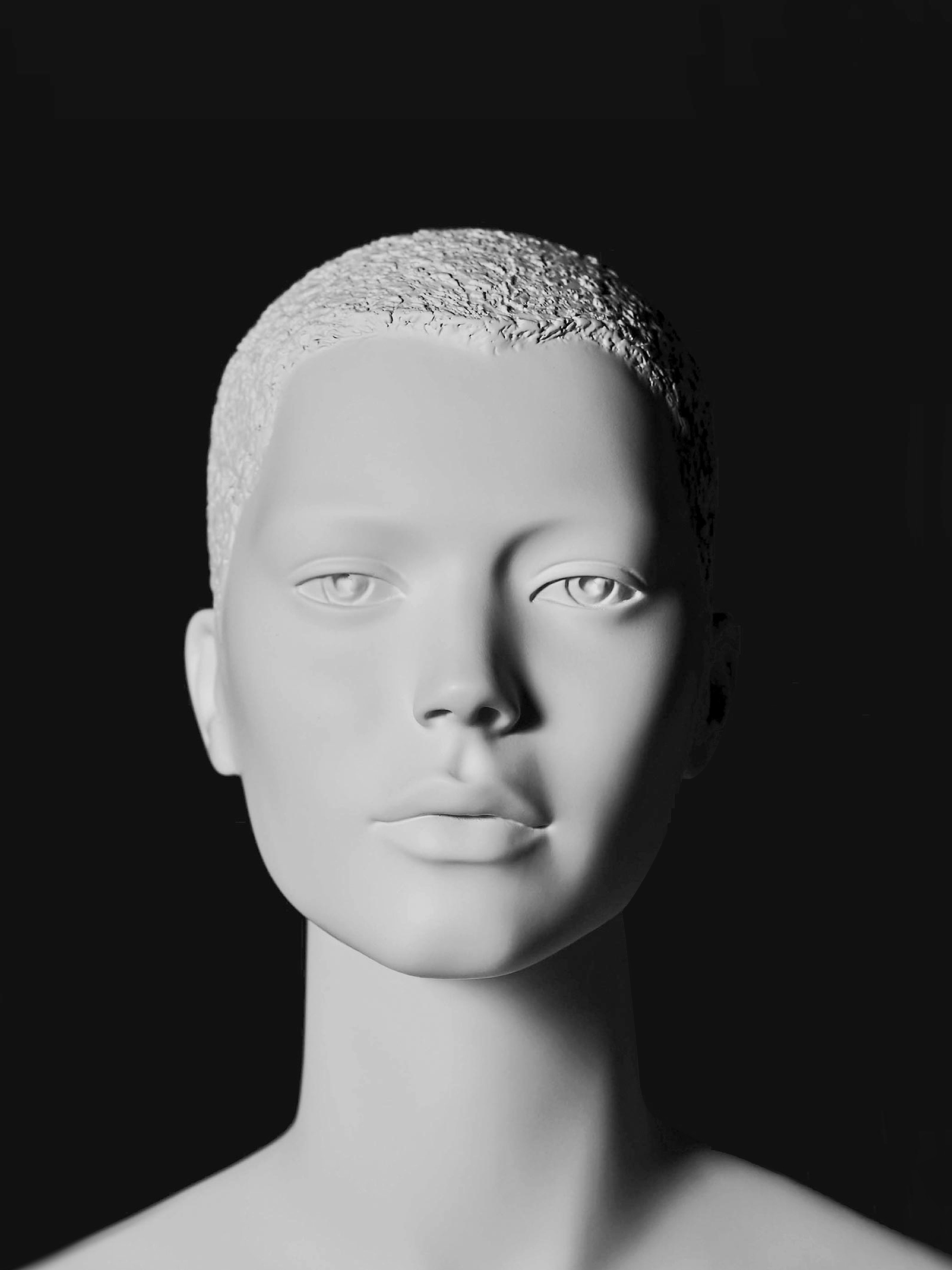 Each of these heads has been designed with a focus ranging from semi-abstract to a more realistic representation, featuring sculpted hair.
